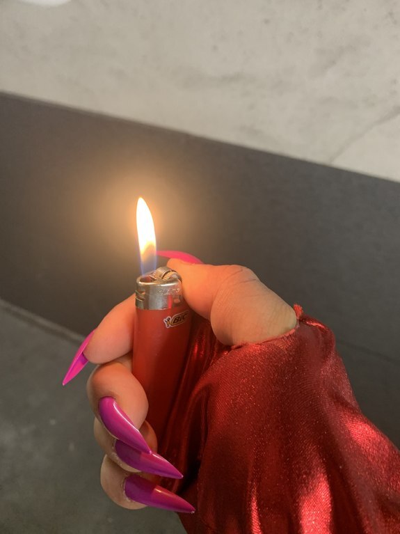 DEUTSCH: Nachdem Hanna 18 Luftballons mit ihrem Mund aufgeblasen hat, ist sie bereit, alle Luftballons zum ersten Mal mit 2 Zigaretten und ihren wunderschönen Stiletto-Nägeln zum Platzen zu bringen. Vor seiner Zigarette hat kein Luftballon eine Chance!