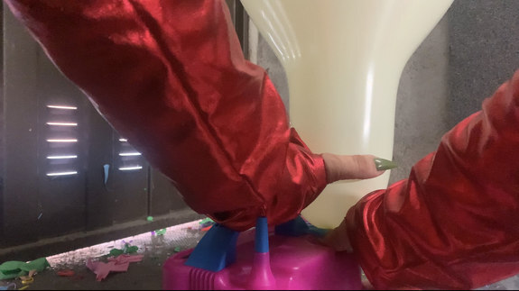 ENGLISH: Hanna inflates balloons with her pink electric pump. 24 balloons including 12 metallic colors and 12 pastel colors.